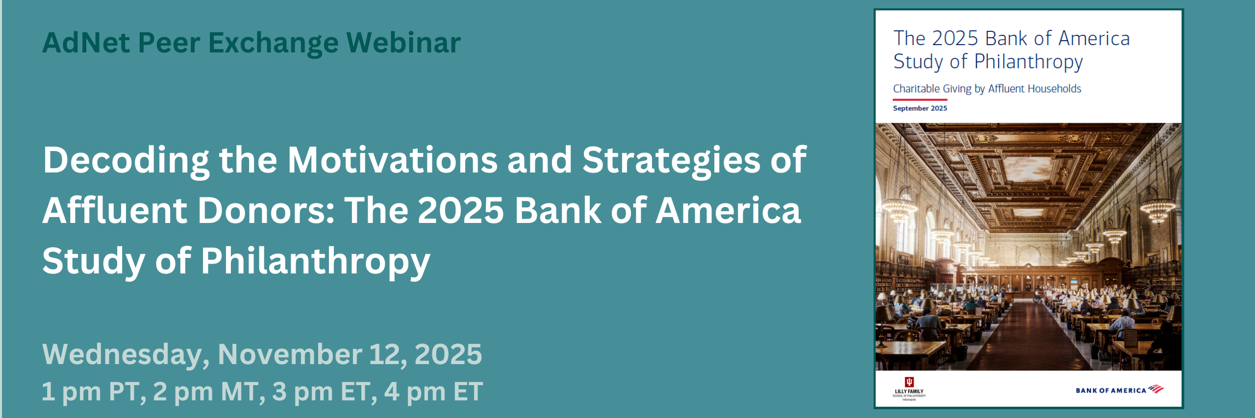AdNet offers peer learning exchanges that provide community foundation professionals with opportunities to collaborate, share best practices, and learn from one another. These sessions are structured as facilitated discussions and focus on fund development, philanthropic advising, and donor services.